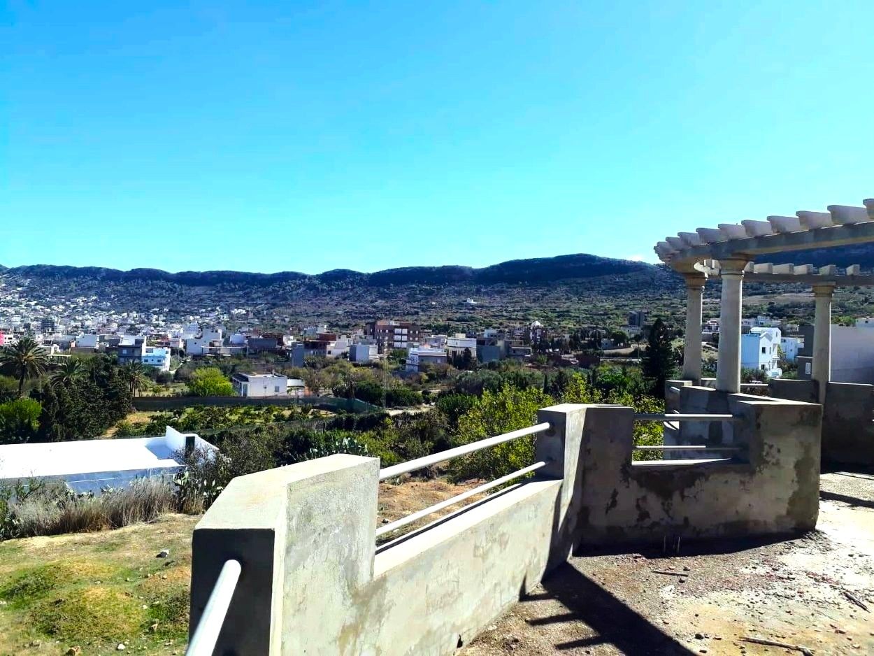 villa contemporaine à l'architecture remarquable bien édifiée sur un terrain de 2000 m2 en situation de position dominante bénéficie d'une belle vue imprenable sur mer bleu dominé par le fameux rocher de rafraf accompagnée du vert de la nature et du montagne